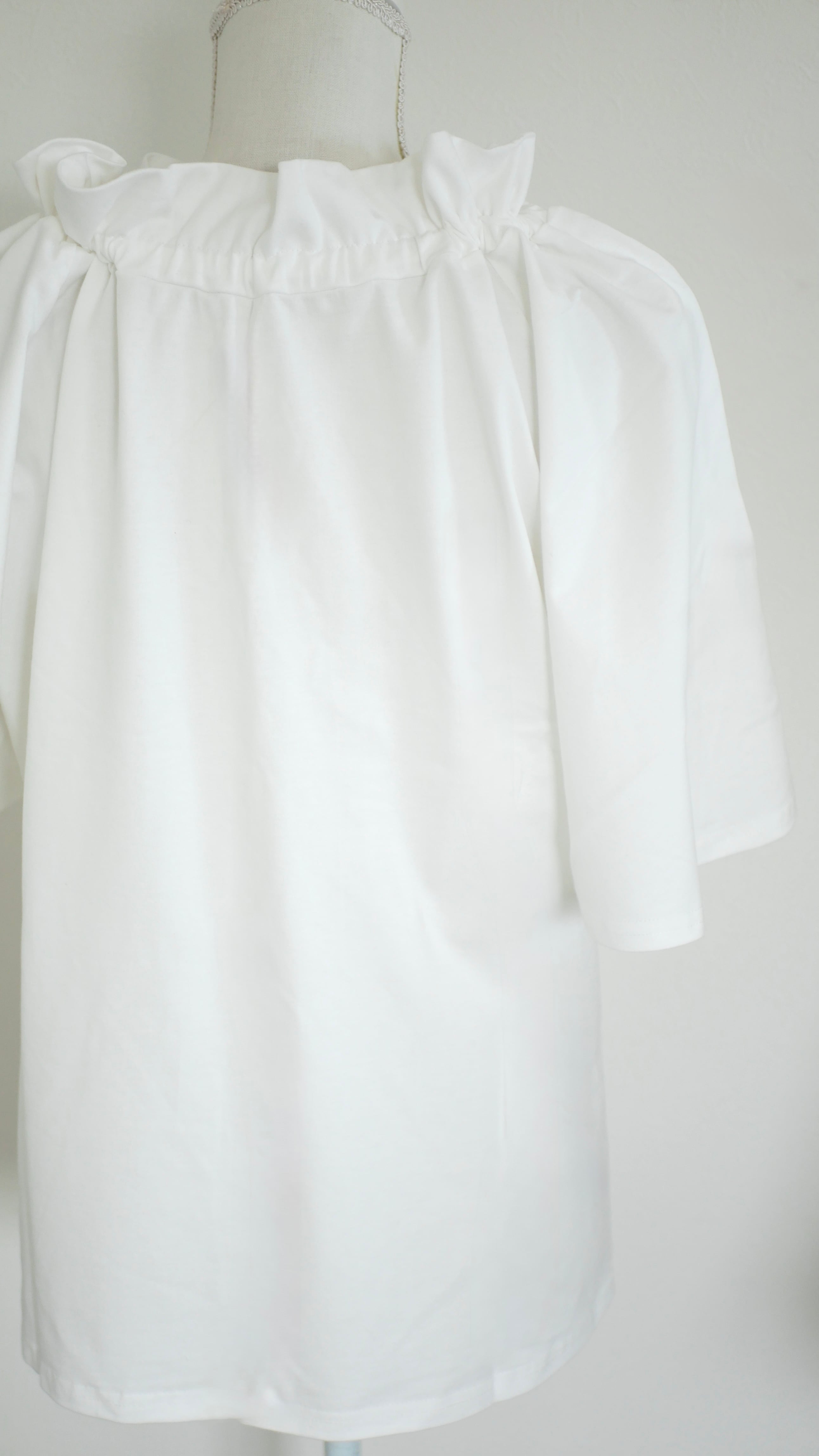 ギャザー入りのネックフリルがポイントのプルオーバー