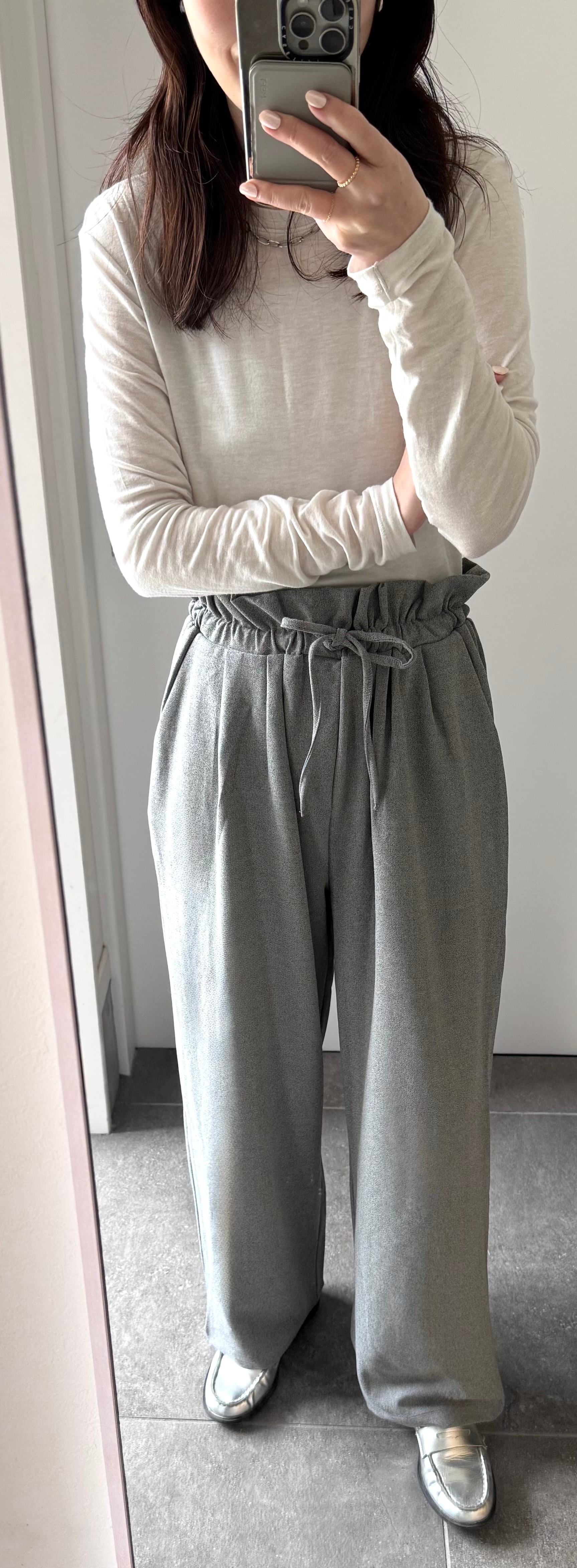 ウエストゴム+紐で調整でき、