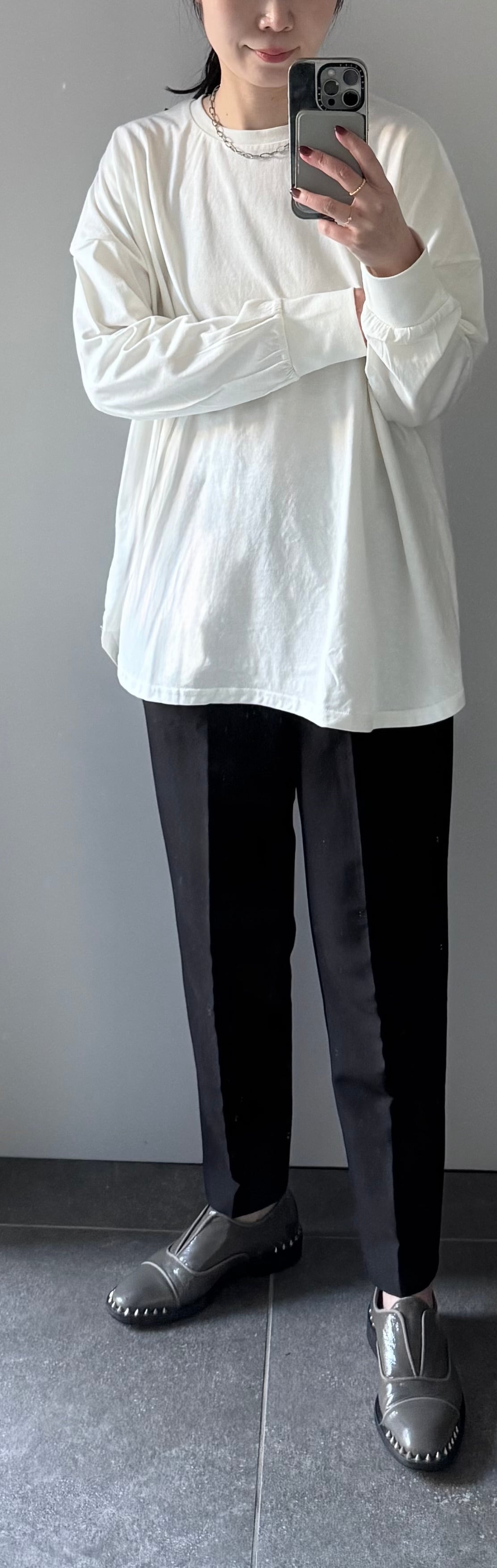 身体のラインを拾わないゆったりとしたサイズ感が、
