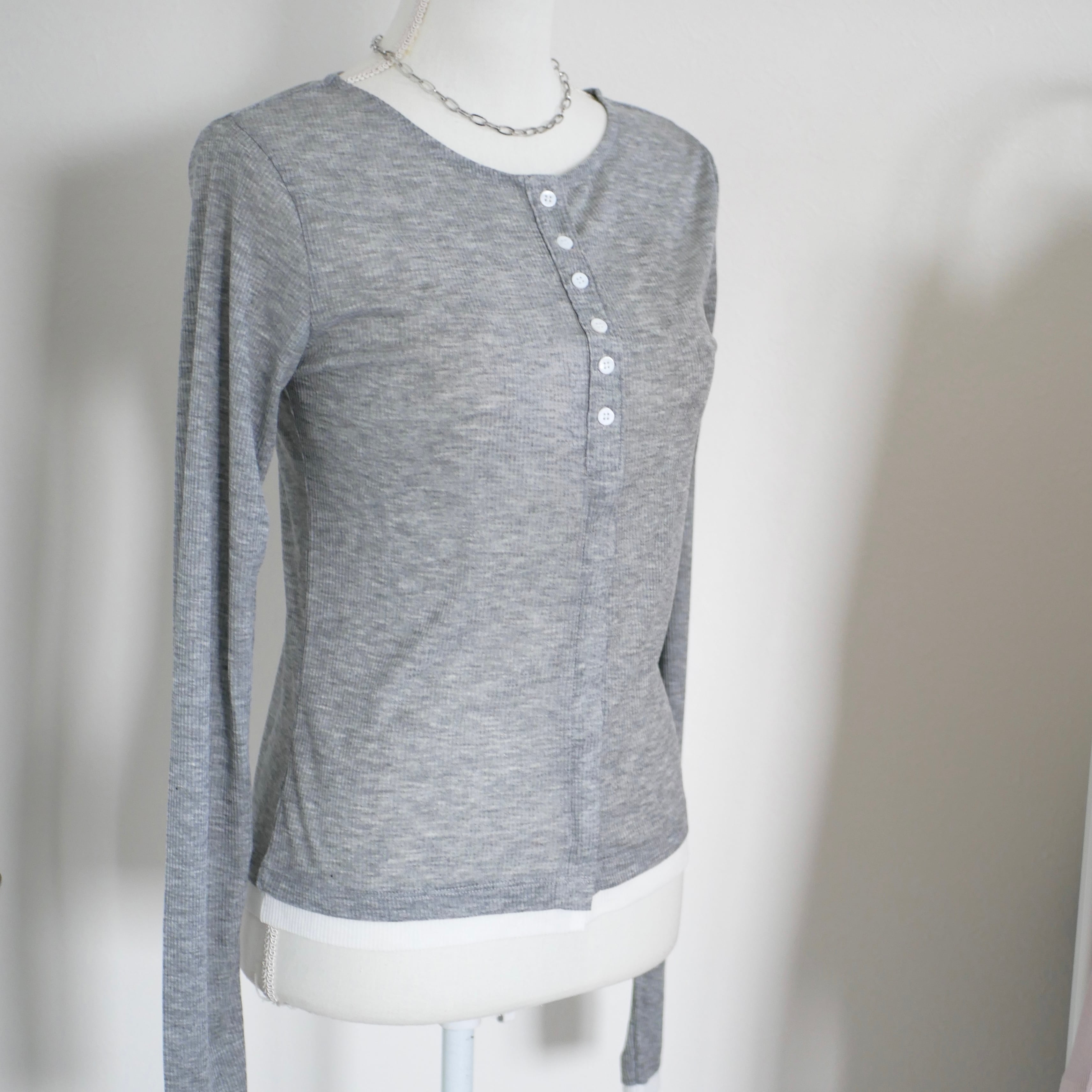 シアーリブカーディガン グレー ¥3,750 ソフトサテンワイドパンツ ブラック ¥4,150